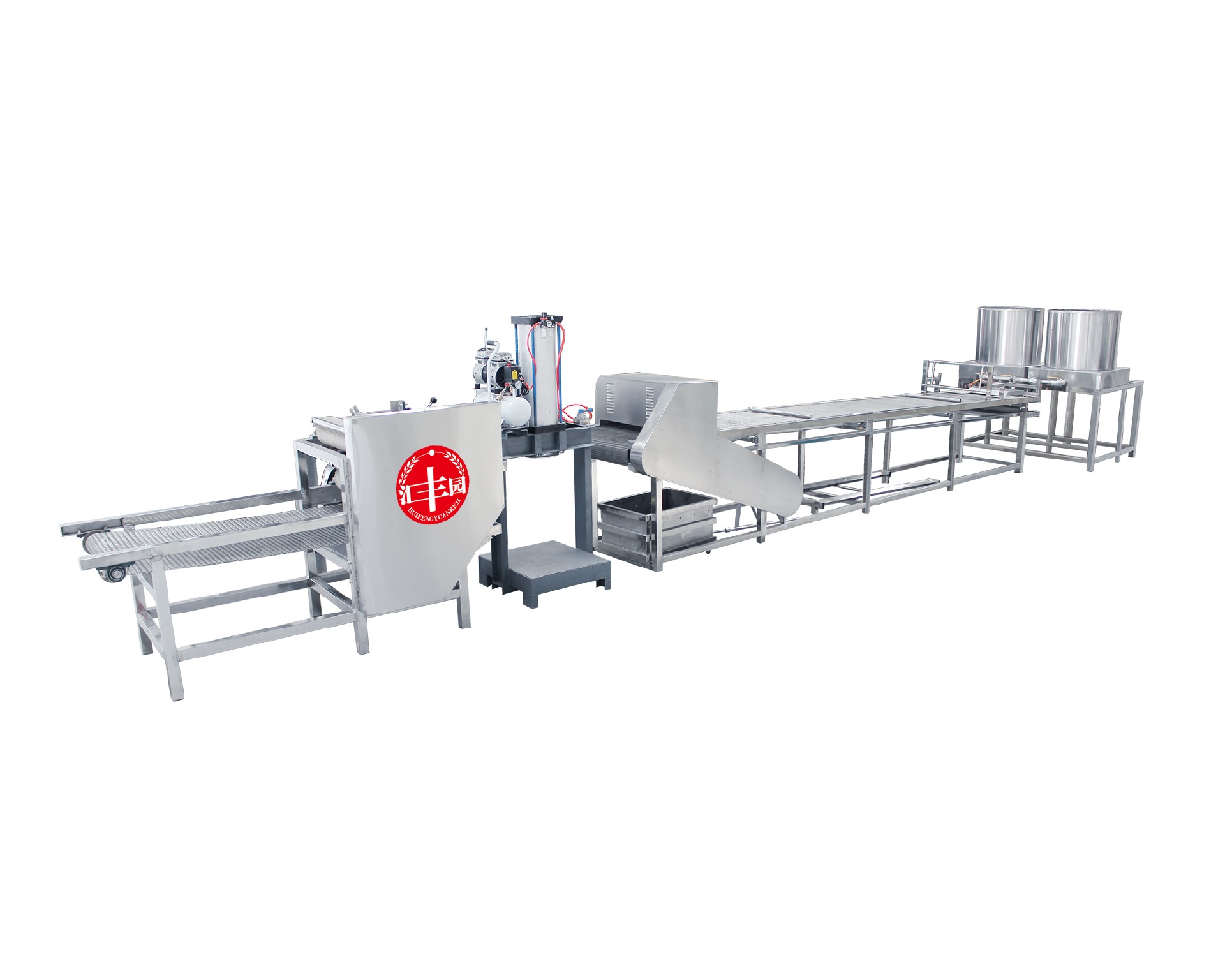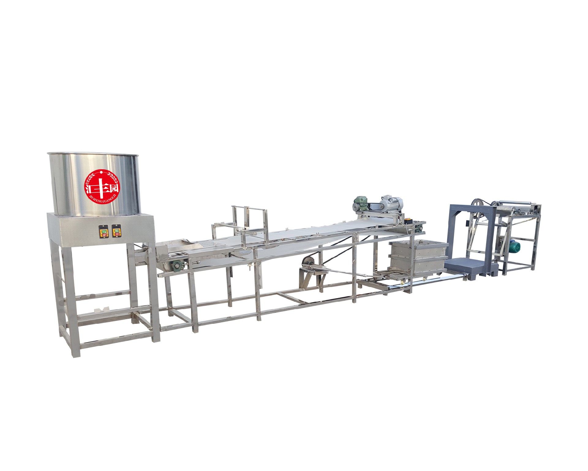 自动豆皮机(豆皮机、干豆腐、百页、千张)生产线,是完成搅脑、泼脑、送料、折叠包布、以及压皮、扒皮、卷包布等工序1-2人就可生产。大大的降低了劳动强度和提高了劳动功效。同时降低了成品生产成本。厚薄宽窄可调、口感劲道滑爽,完全和传统生产的产品相媲美。本机特点:1、仿手工不改变手工的原色原味。2、占地面积小、操作简单。3、用电量小,有220V和380V电源供选择。4、分为90、100普通型和200、300标准型、400、600型工厂型、500仿手工适合做厚皮型。5:便于清洗,使用寿命可到十年以上。