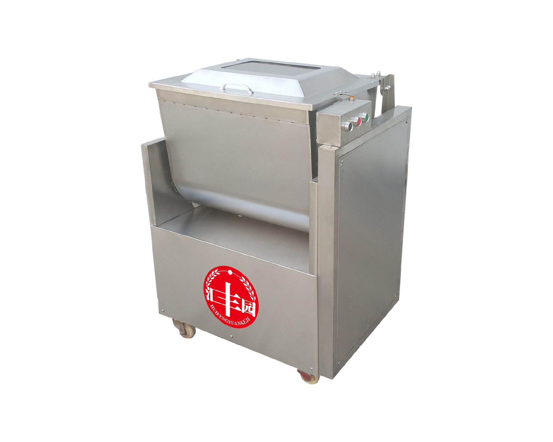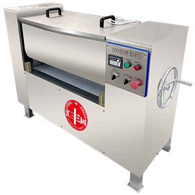 拌馅机是用于混合多种原料的高效机器,效率高,便于操作,使拌出的肉馅纤维细化,加入的调味汁液能充分吸收饱和,以保持馅的 松、鲜、嫩、口感味道优异的特点。是粒状、泥状、肠类、丸类、水饺、包子、馄饨类等产品的必备设备。50型为单绞龙,匀速转动, 100、200、300型为双绞龙,变频调速。 | |